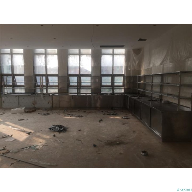 信陽宏信國際大酒店定制設計-不銹鋼備餐柜。采用304立方體臺面,單獨每套分割開,上置不銹鋼層架,方便放餐盤。衛生,潔凈,SUS304食品級,可以使用一百年,不變形,不發脹,不褪色。