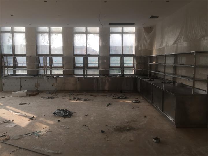 信陽宏信國際大酒店定制設計-不銹鋼備餐柜。采用304立方體臺面,單獨每套分割開,上置不銹鋼層架,方便放餐盤。衛生,潔凈,SUS304# 食品級要求,可以使用一百年,不變形,不發脹,不褪色。