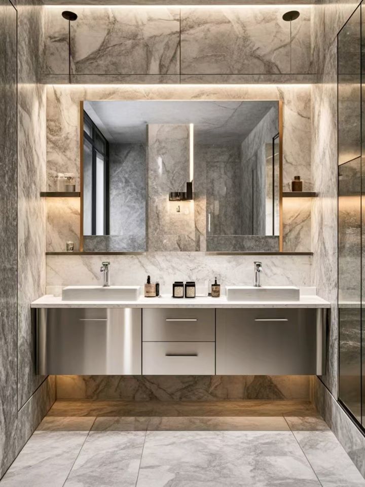 明鉑爾不銹鋼定制浴室櫥柜,以優質不銹鋼為材質,堅固耐用,抗腐蝕、防水防潮,輕松應對浴室潮濕的環境。無論歲月如何流轉,它始終保持著穩定的品質,為你長久守護浴室的整潔與美觀。